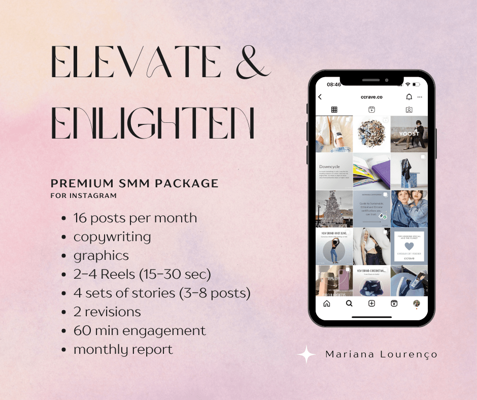 Elevate your brand’s presence, outreach, and influence with the transformative Elevate & Enlighten package. Engage your audience with a vibrant flow of content and social media magic that leaves a lasting impact.